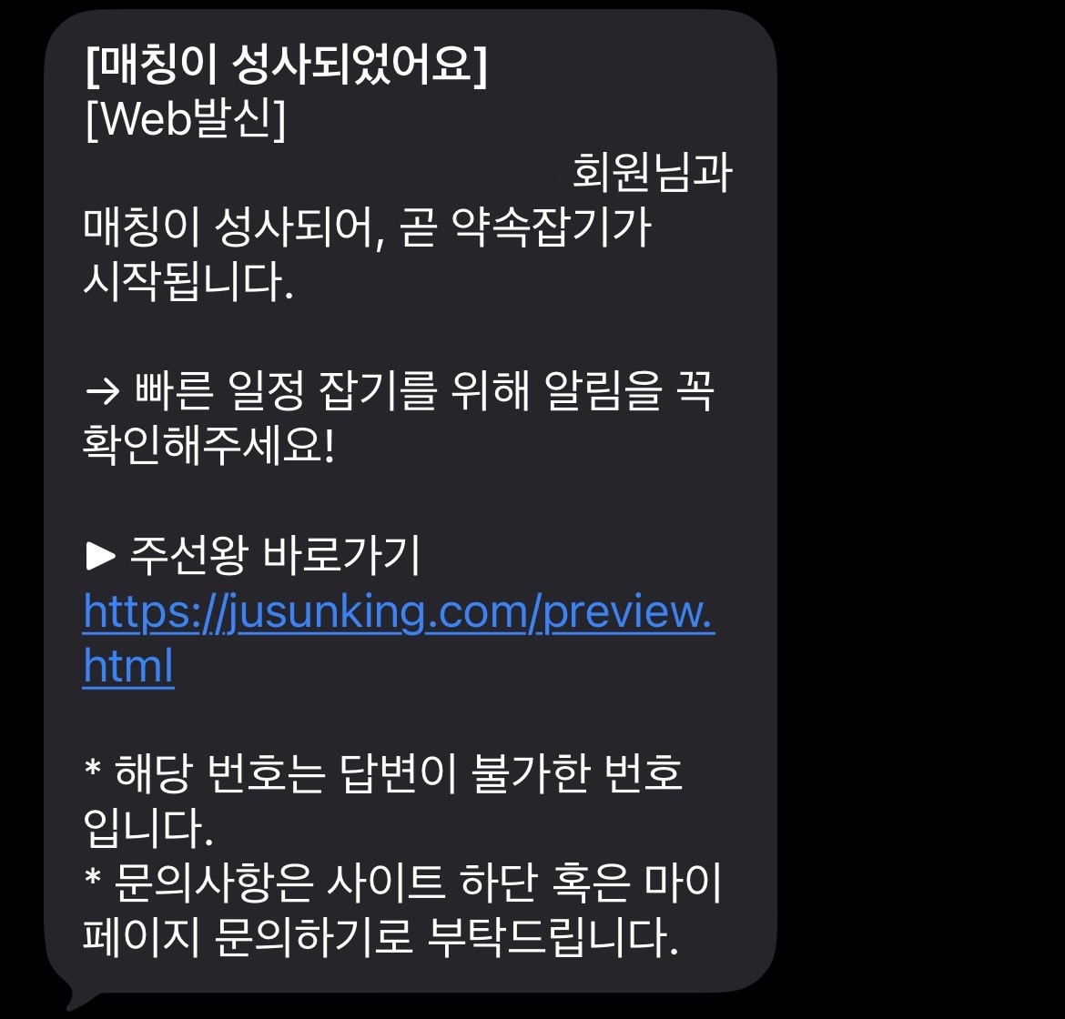 - 매칭되면 다음날 오전 10시부터 일정 조율이 시작되며 반드시 자정 전까지 완료해야 한다.