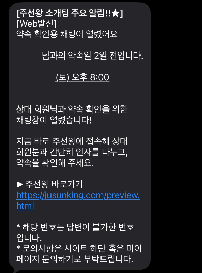 - 만남일 2일 전부터 채팅 기능이 열리며