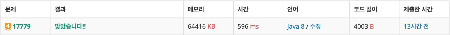 | 백준 17143 낚시왕 - 삼성 SW 역량 테스트 기출 (0) | 2021.09.27 |