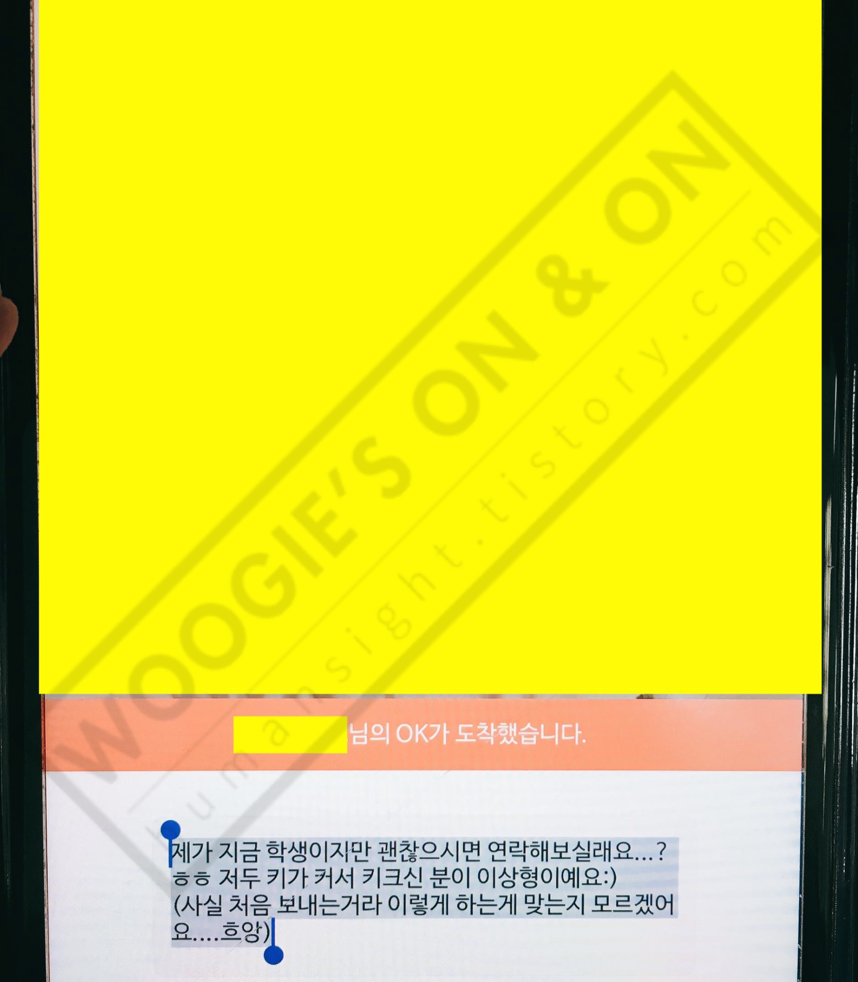 위의 사진은 실제로 여자 회원한테 받았던 OK 메시지다. 메시지를 보면 내 프로필 i want 항목에 있는 키 큰 사람을 언급했다. 하지만 나이 차가 좀 나서 거절을 드렸다.