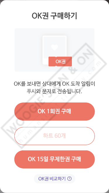 스카이피플은 OK 하나당 ❤️25 가 소모된다. 근데 여러분의 이상형이 얼마나 많이 나올지에 대해서는 모르는 일이다. 그래서 15일 무제한권(❤️200)이나 하루 무제한권(❤️60)을 추천한다.