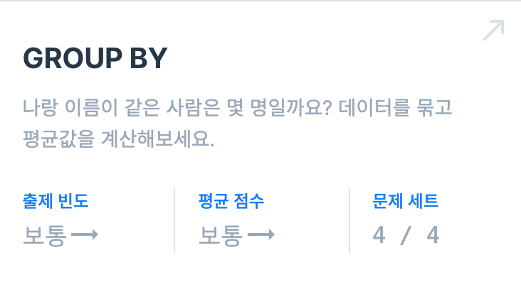 3. GROUP BY(컬럼명) : 컬럼 내에서 같은 값끼리 묶어서 그룹화 한다.