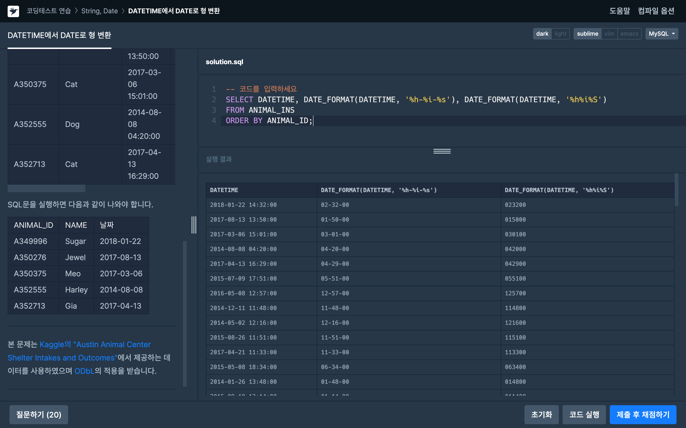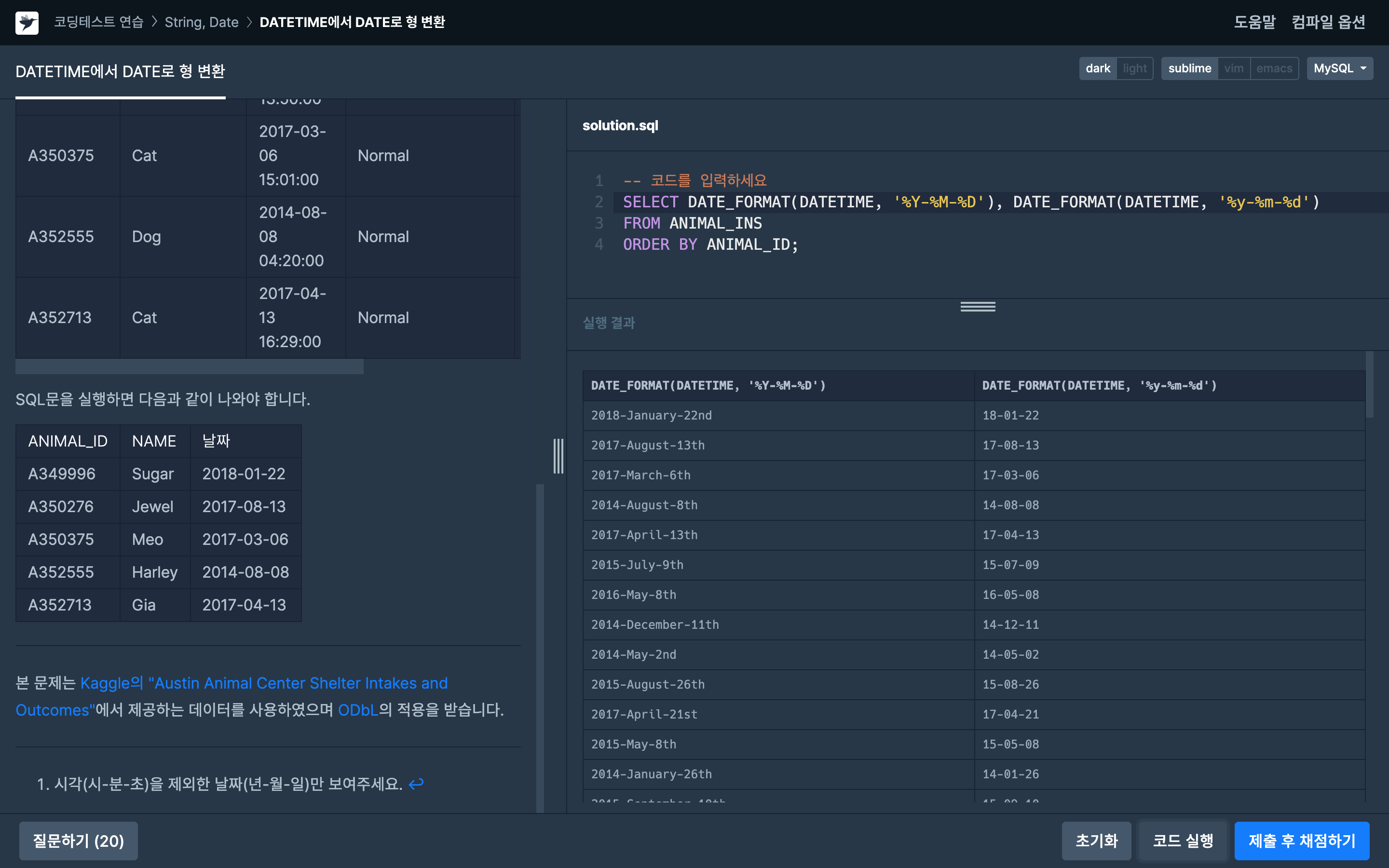 1. 출력 예시에서 DATETIME이 yyyy-mm-dd의 형식으로 변경되었다.